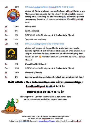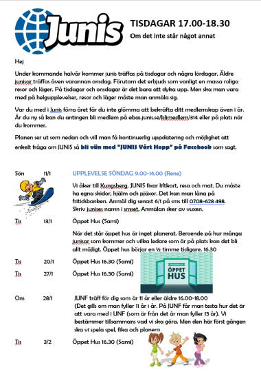 - Vara med på Juniorförbundets alla aktiviteter i föreningarna, Stockholmsresan, läger och andra distriktsarrangemang