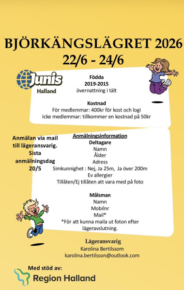 Björkängslägret Preliminära datum och grupp Födda 2019-2015 Mer info och anmälan kommer i april